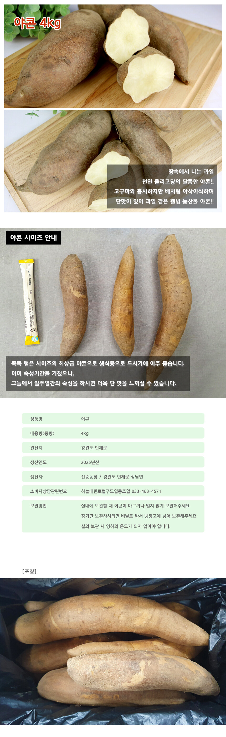 강원도 인제 숙성 야콘 4kg 2025년 국내산 [로컬푸드]